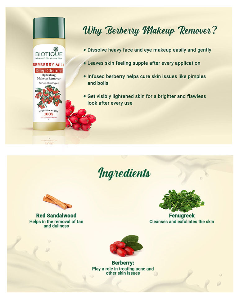 BERBERRY is an ancient and honored herb with a rich history of healing and purifying properties. This refreshing, non-foaming lotion is blended with extracts rich in anti-oxidants like berberry, fenugreek, lodhra bark and almond oil to dissolve makeup and grime. Leaves skin feeling soft and
