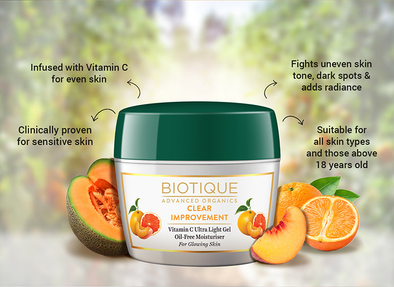 Biotique Clear Improvement Vitamin C Moisturizer fights all key indications of uneven skin tone and dark patches and aids in skin illumination.