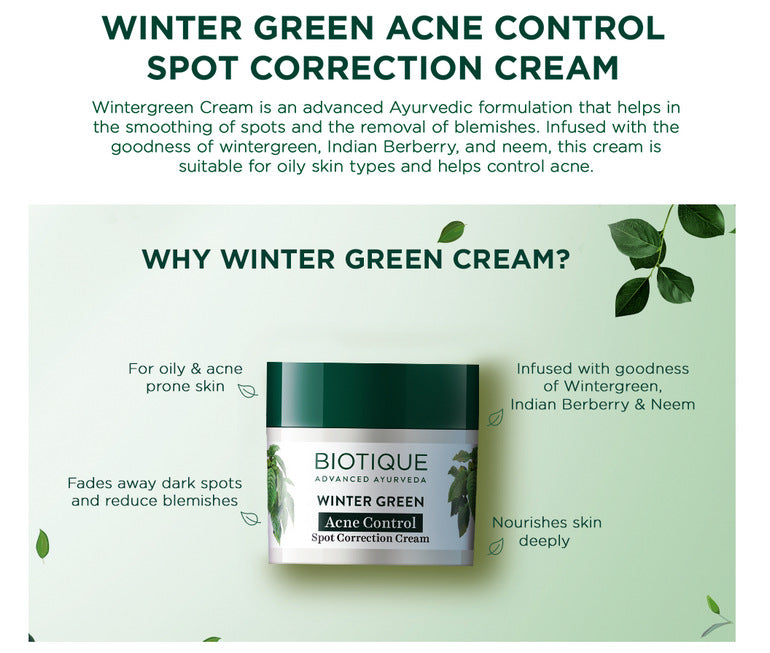 • WINTER GREEN: Winter green is extracted from the leaves of a small evergreen herb native to India, used throughout history for its cooling, healing, anti-inflammatory action. Ideal for oily and acne prone skin.