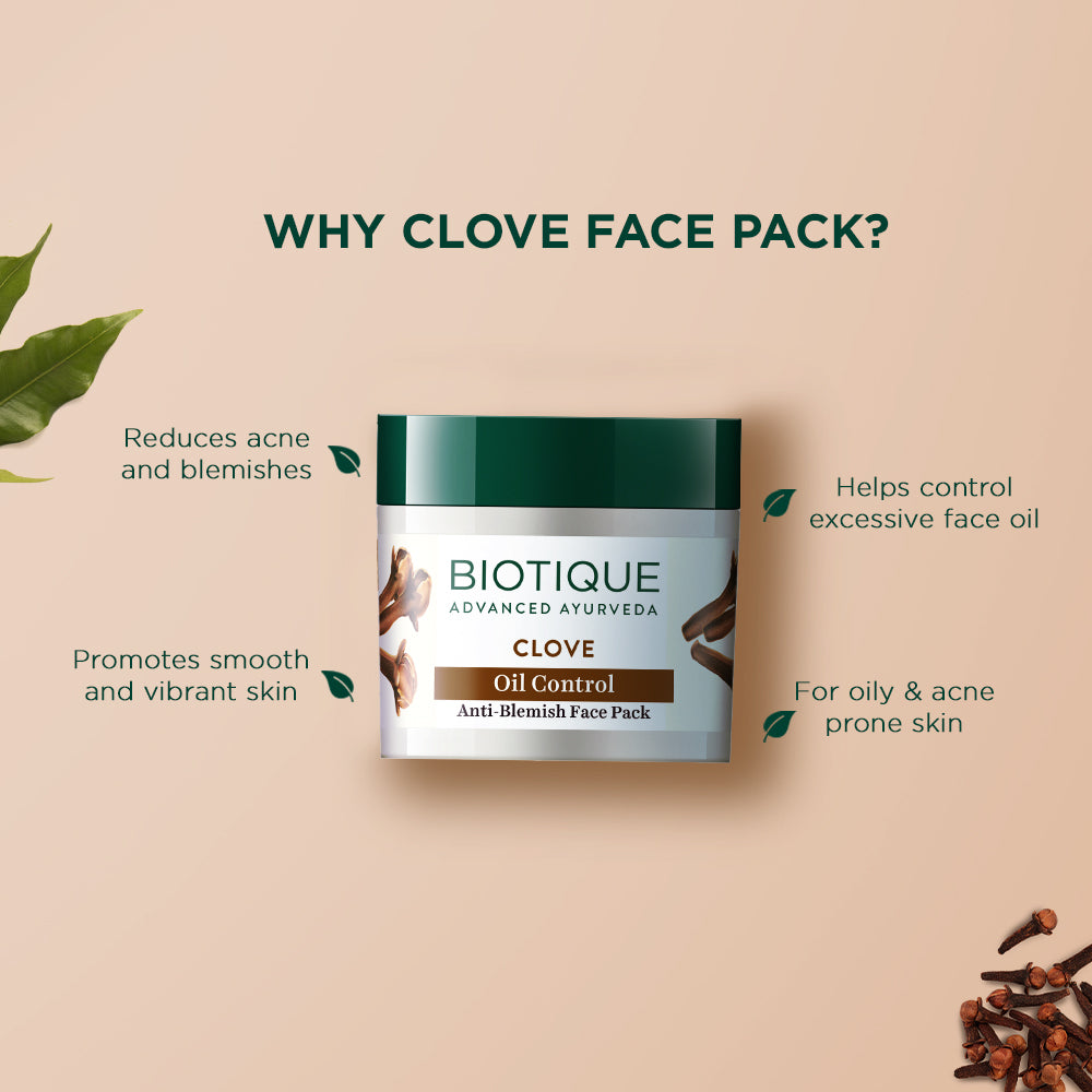 The Biotique Clove Oil Control Anti-Blemish Face Pack costs Rs.240 for a 75gm pack.