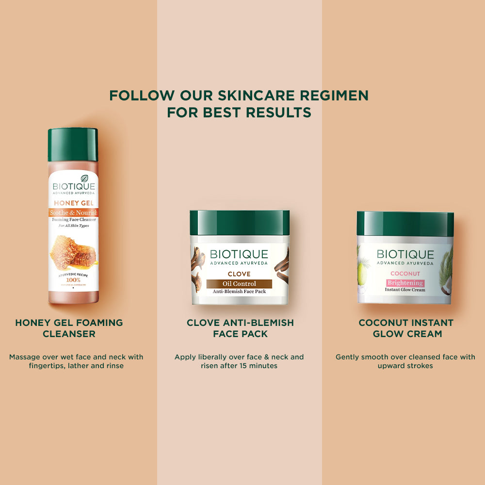Biotique Clove Oil Control Anti-Blemish Face Pack can be used by applying a thick layer to a clean, dry face and neck. Avoid the eye and mouth areas. Leave it on for 15-20 minutes. Rinse off with water or a damp washcloth.
