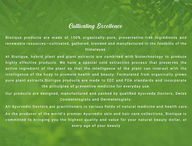 BIOTIQUE is based on 5000-year-old Ayurvedic recipes known to integrate and celebrate body, mind and spirit.