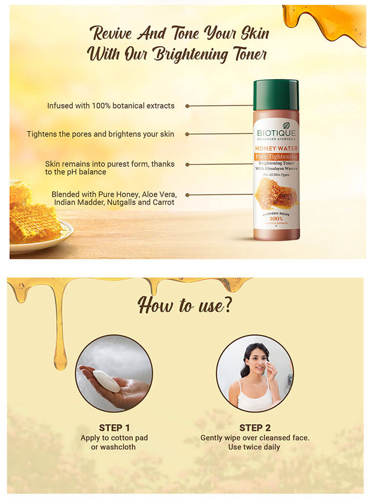 Biotique Honey Water Pore Tightening Brightening Toner can be used twice daily.