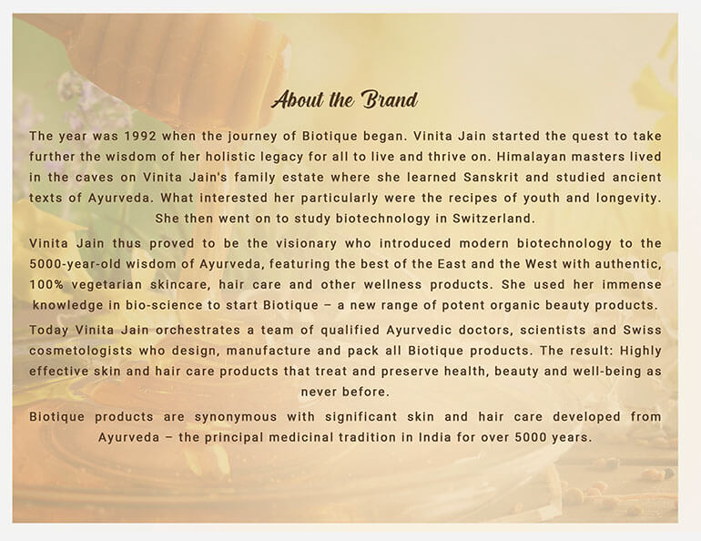 BIOTIQUE is based on 5000-year-old Ayurvedic recipes known to integrate and celebrate body, mind and spirit.