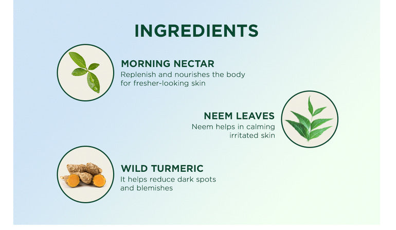 The Sanskrit translation of Nectar is 'Amrita'. Amrita literally means the elixir of beauty & immortality. Combined with 21st century biotechnology, MORNING NECTAR Nourish & Hydrate Body Wash gives you visibly flawless beauty. Prevents dark spots, blackheads, uneven skin tone & blemishes. Leaves skin visibly brighter. Also Contains Wild Turmeric, Ashwagandha, Neem Leaves & Ginger.