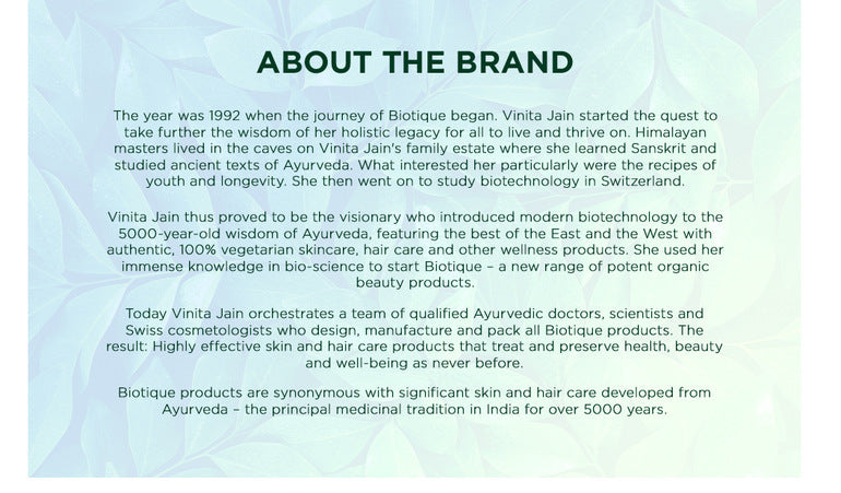 BIOTIQUE is based on 5000-year-old Ayurvedic recipes known to integrate and celebrate body, mind and spirit.
