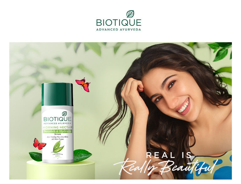 Biotique Morning Nector Nourish & Hydrate Serum can be used daily to brighten, smooth and nourish the skin.