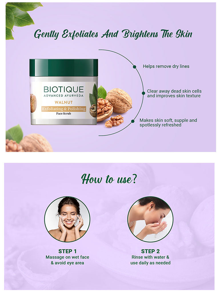 Use Walnut Exfoliating & Prossing Scrub 2-3 times a week. Especially if you have oily skin, you can increase the dosage up to 3 times a week.